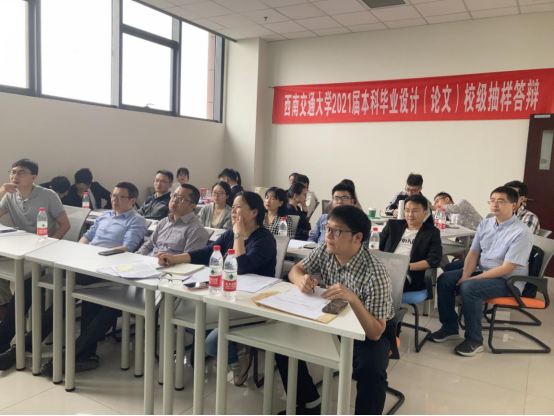 2021届本科毕业设计(论文)校抽样答辩在犀浦校区三号楼举行,本次校抽样答辩由陈俊英教授担任答辩委员会主任并主持答辩,由熊俊老师、苟雪老师、祁晓东老师、孙奇老师和7位校级抽样答辩学生的指导老师担任答辩委员,张松老师担任答辩秘书。