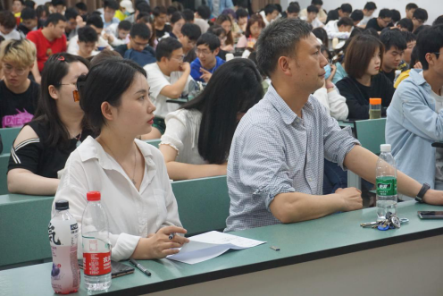 会上,同学们认真听讲,仔细思考自己的未来方向。章书记和黄老师带来了考研形势与分析令同学们获益匪浅。结尾时,章春军副书记和黄德明老师给2018级全体同学亲切的祝愿,希望大家都可以实现自己的人生目标。