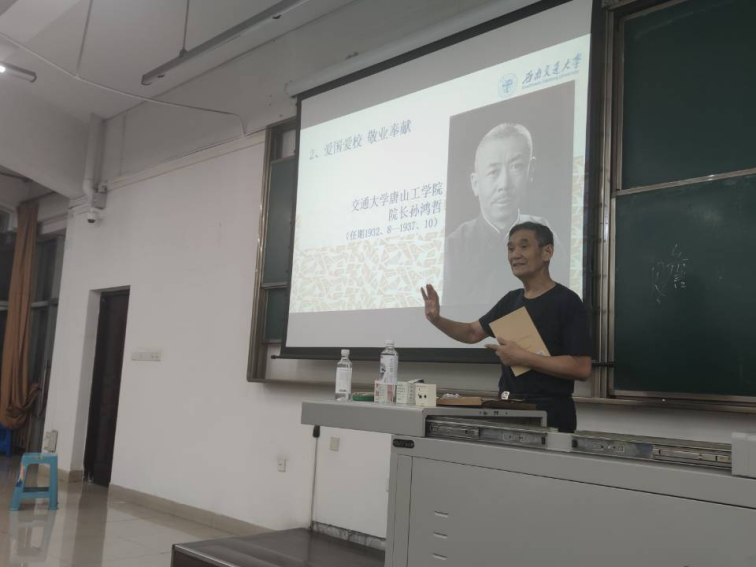 首先,梁锦唐老师讲述了学校的诞生及发展历程。梁老师以初创渝关、复校唐山、搬迁峨眉、定址蓉城、扩建犀浦五个主题将交大124年的辉煌校史串联在一起,向同学们展示西南交通大学在为中华民族争取独立解放和伟大复兴的征程中一幅幅波澜壮阔的历史画卷。