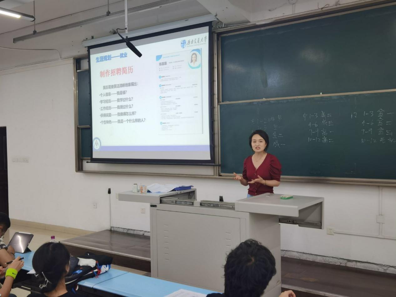 最后,由辅导员老师熊苏雅讲解安全规章制度,再次强调学生非必需不得离开四川,对离校请假手续再次详细介绍。对生涯规划部分,补充了简历制作的重重要性,并安排每位同学制作一份简历。