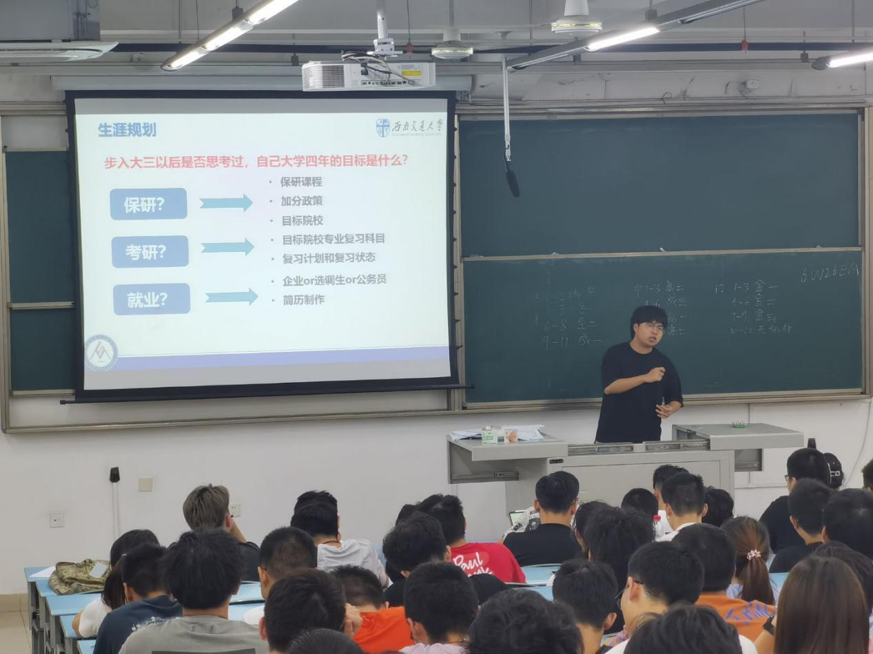 往年考研录取比例,重点提醒对保研、考研有意向的同学,需从大三开始,提前开始着手准备,并讲解了认清自己的定位对保研、考研上岸的重要性。期间,于睿智同学用幽默风趣的语言,对未来生涯规划的重要型,分享了自己的见解。最后,于睿智同学为了解同学们未来生涯规划,制作了一个生涯规划意向调查表。
