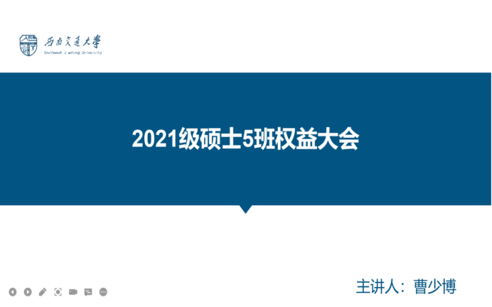 2021级硕士5班开展了权益大会。为了积极响应学校相关防疫政策的要求,减少人员接触,本次班级权益主题班会采用腾讯会议的方式进行召开。
