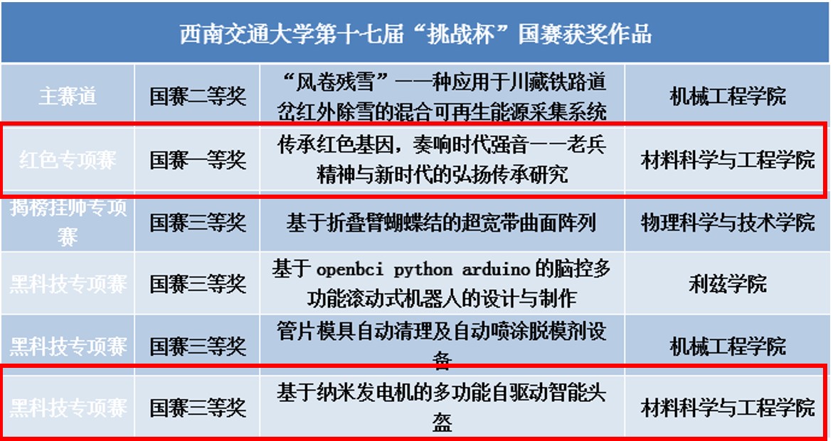 2022年4月12日,由共青团中央、中国科协、教育部、中国社科院、全国学联和四川省人民政府主办的第十七届“挑战杯”全国大学生课外学术科技作品竞赛圆满闭幕。西南交通大学在本届“挑战杯”竞赛的主赛道及三个专项赛事中均有获国赛奖项,其中两项为大发体育