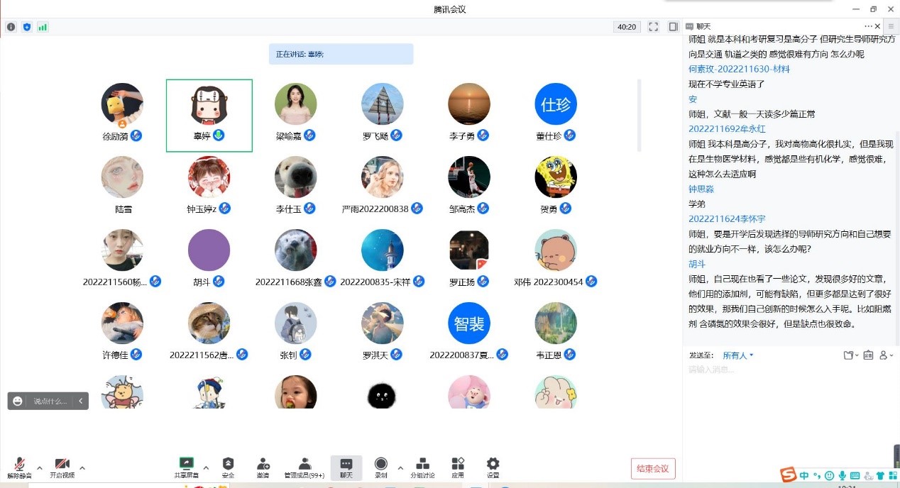 在提问环节,新生们从科研生活、学习和就业等方面积极提出困惑,辜婷和辅导员罗丹、梁喻嘉及时做出细致解答,给出很多建设性意见,新生们收获了满满的经验和情谊。