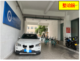 九里校区3号楼东南门处常有汽车违规停放在中庭通道、汽车在未划线且妨碍消防通道的门口处随意停放、以及摩托车、自行车在消防通道处违规停放的情况,消防通道堵塞不仅阻碍通行,还存在较大安全隐患。为此,学院生工作组和院综合办公室联合开展专项整治行动,通过摆放禁停标识和引导牌、开展相关公示公告或点对点告知,强化学院师生的安全意识。在此基础上,学院组织研究生在消防通道摆放路障锥桶、给违规停放汽车发放告知单、安排党员干部值守执勤和检查规整。消防通道整治工作效果明显,此项工作的成功开展不仅为师生创造了更平安的环境,还提高了全院师生的消防安全意识。