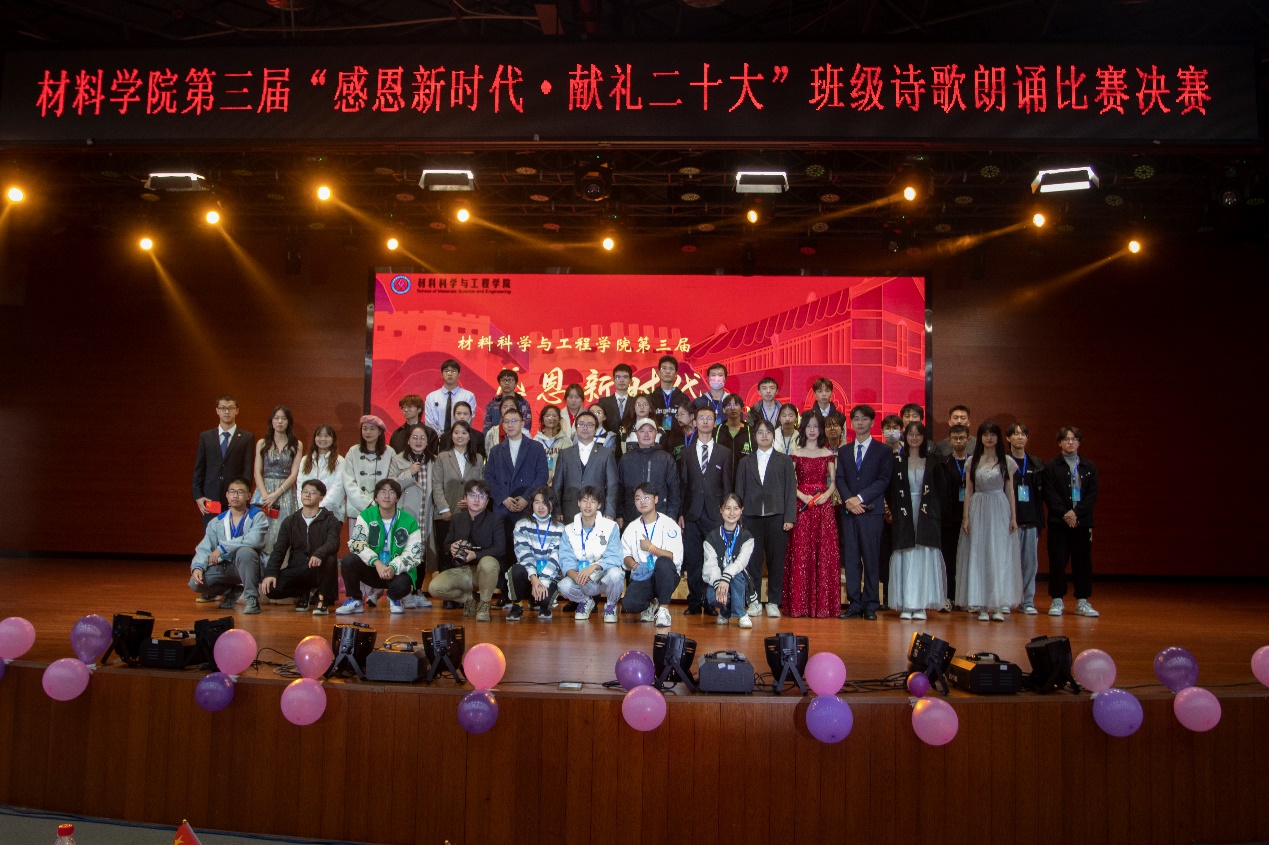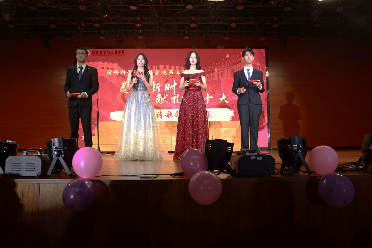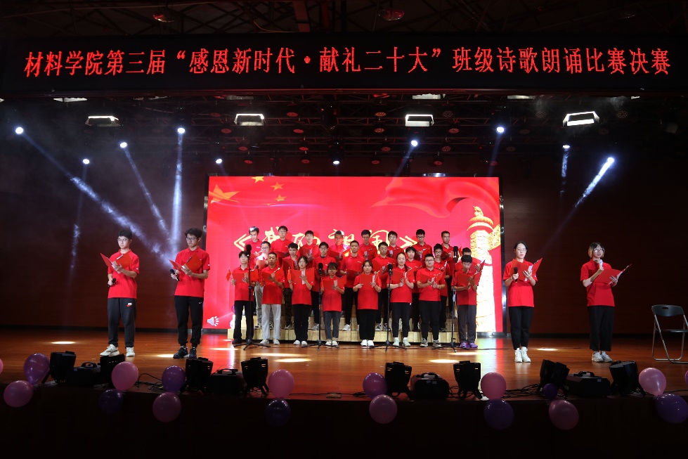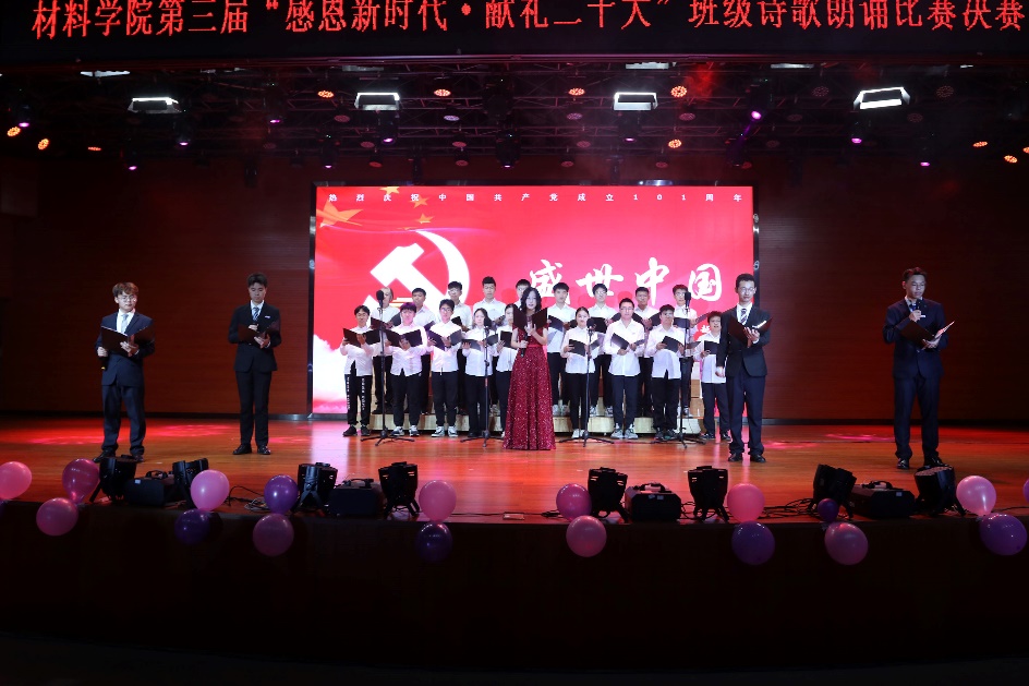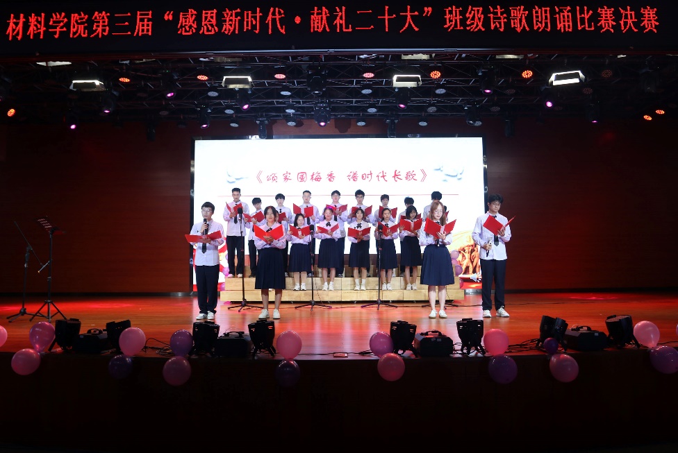 班级诗歌朗诵比赛已连续举办三届,累计60多个班级参与、近2000人参加,有效地教育和引导材料青年坚定文化自信、弘扬民族精神。班级诗歌朗诵是一种以全员参与为目标的美育模式,是一种加强班级凝聚力促班风学风的良好形式,更是一种提升材料类专业学生审美和人文素养的艺术载体。