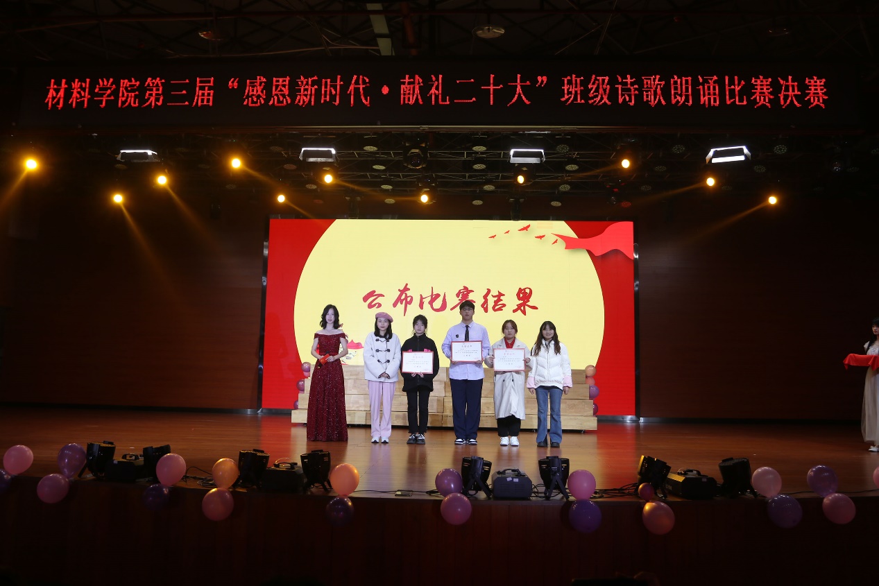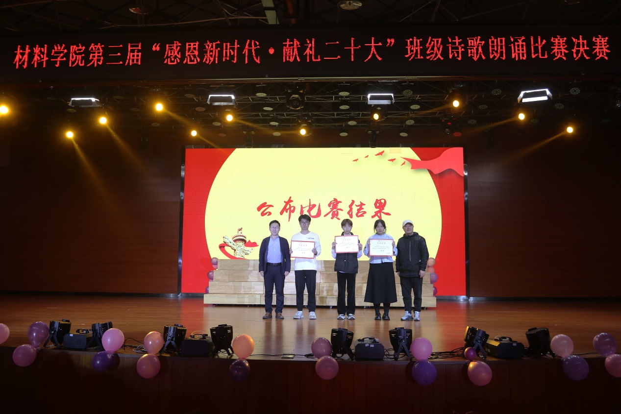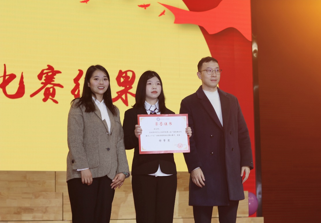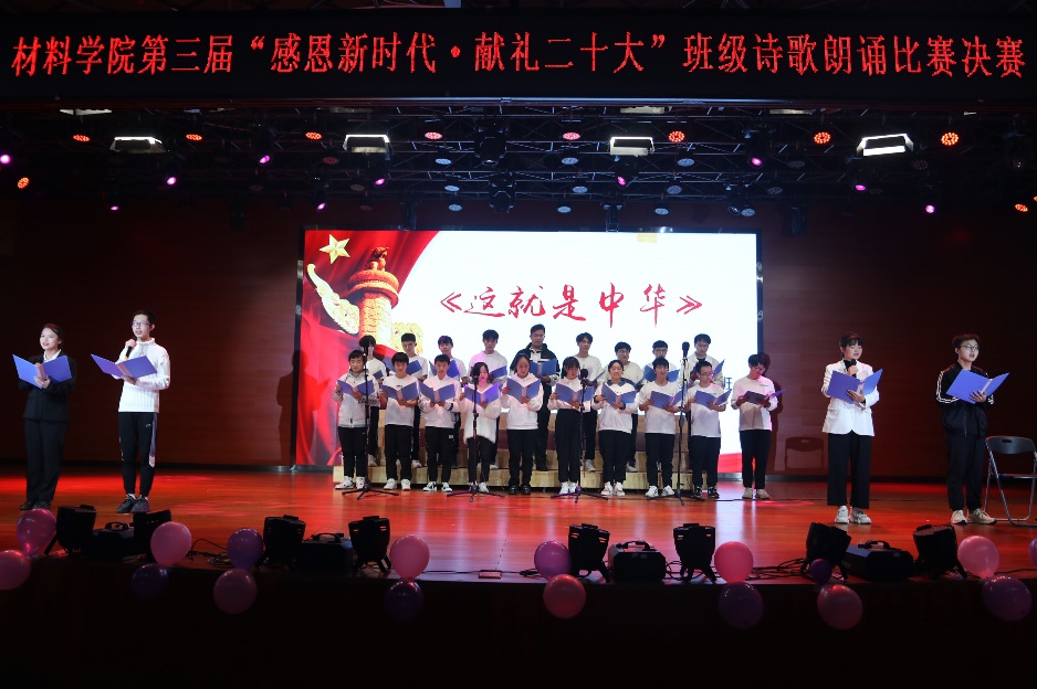 班级诗歌朗诵比赛已连续举办三届,累计60多个班级参与、近2000人参加,有效地教育和引导材料青年坚定文化自信、弘扬民族精神。班级诗歌朗诵是一种以全员参与为目标的美育模式,是一种加强班级凝聚力促班风学风的良好形式,更是一种提升材料类专业学生审美和人文素养的艺术载体。