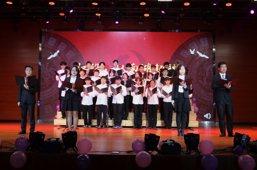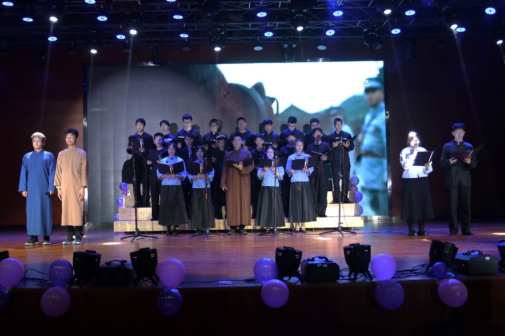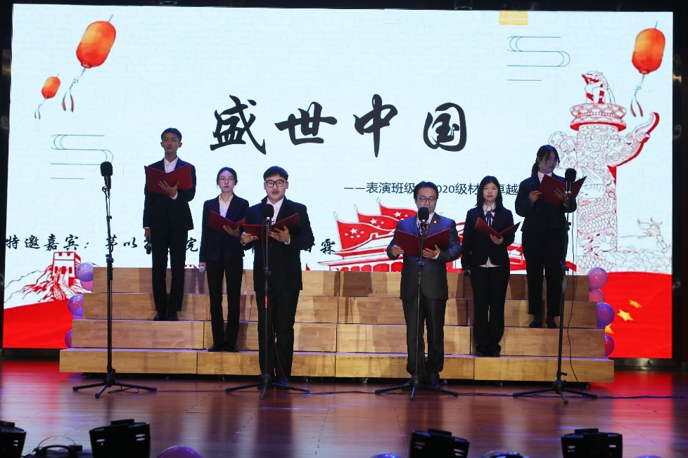 2022级材料5班,他们仿佛能够穿越时空,徐徐书写战火硝烟中《觉醒年代》的奋起与抗争;2021级生医2班歌颂了我们《新时代最可爱的人》,向我们身后默默坚守的人致敬;2020级材料卓越班与甘霖老师带来的原创作品《盛世中国》,澎湃热血的表演带动了全场观众的情绪,将一个灿烂多彩、雄浑壮阔的盛世中国展现在我们面前;2020级金属1班朗诵前的二胡独奏为节目增光添彩,他们用豪迈的声音呐喊——《这就是中华》;2022级材料7班与胡博老师,演绎出《英雄》的一身傲骨,凝聚成中华民族伟大复兴的春潮巨浪……