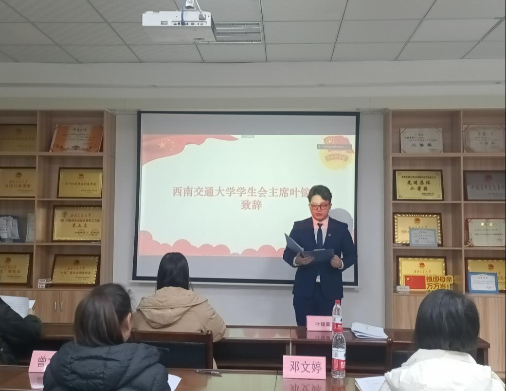 (西南交通大学学生会主席团成员叶镓豪致辞)