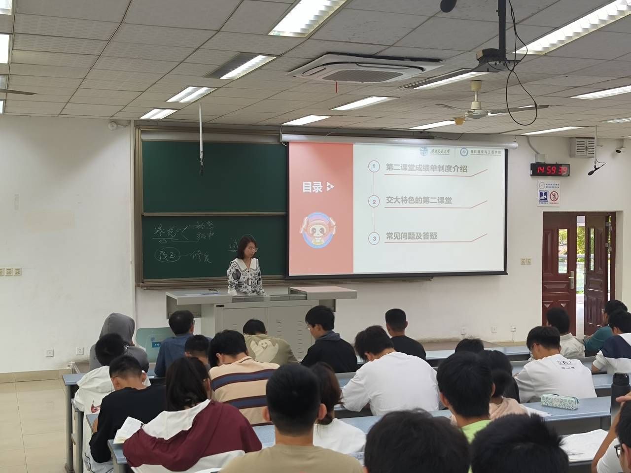 于X1215教室举办了本科2023级第二课堂制度宣讲。本次宣讲由辅导员熊心怡主持,本科2023级全体新生参加。