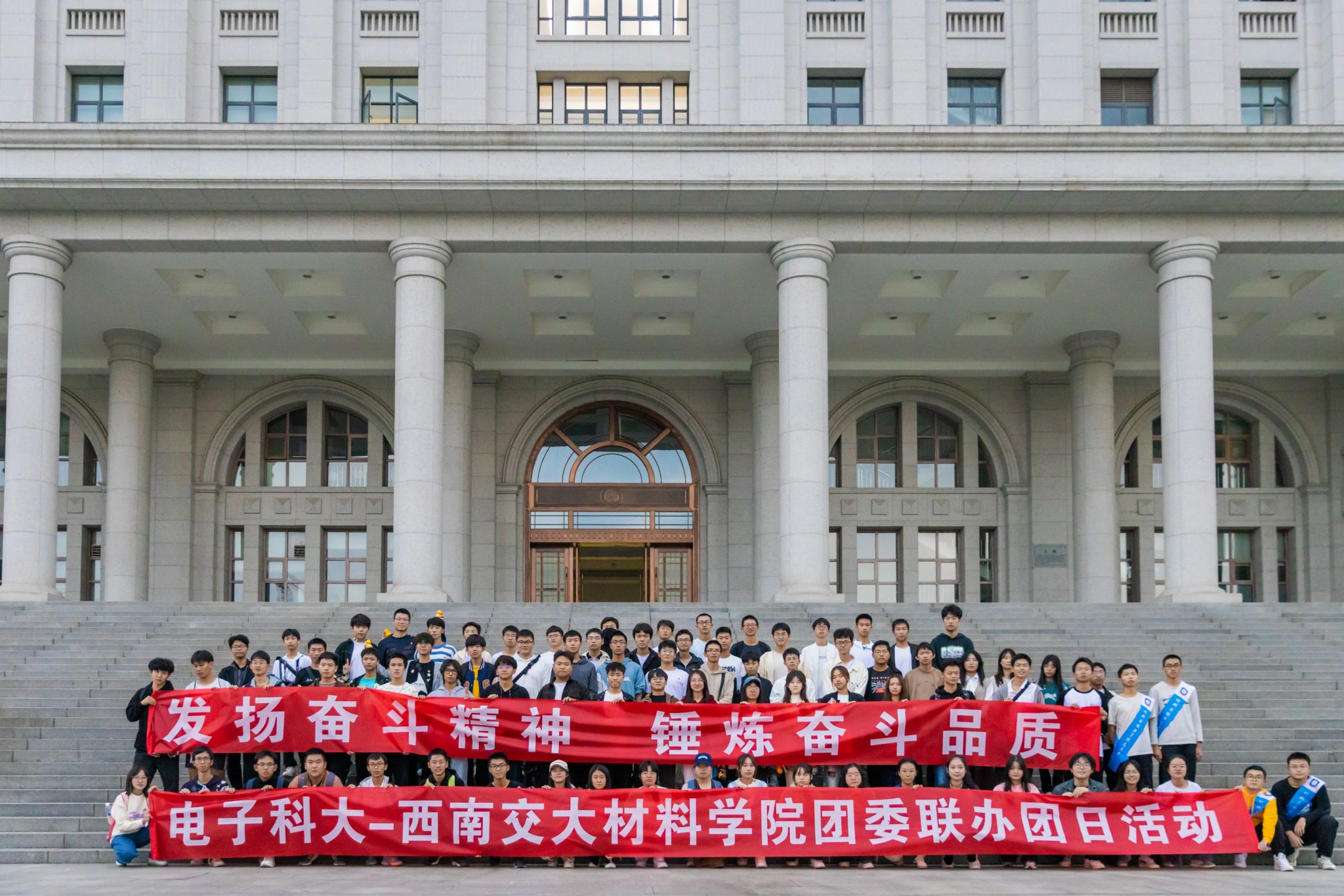 最后,两校工作人员及参与同学在电子科技大学主楼处合影留念。至此,本次电子科技大学材料与能源学院-大发体育-大发在线体育投注平台