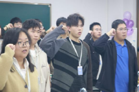 紧接着大会进行授牌仪式。授予工作牌是对加入学生会的成员的身份认可。所有人心中都充满着骄傲,带上会牌,就代表了一份肩负的责任与信任。它将会激励着部员们认真工作,全心全意为同学服务。授牌结束后,学生会全体成员进行了庄严的宣誓。大家举起右拳,嗓音洪亮,宣读誓词,明确作为学生会成员的责任和要求,铿锵的宣誓声表达着他们以身作则、敢为人先、行为示范的决心。