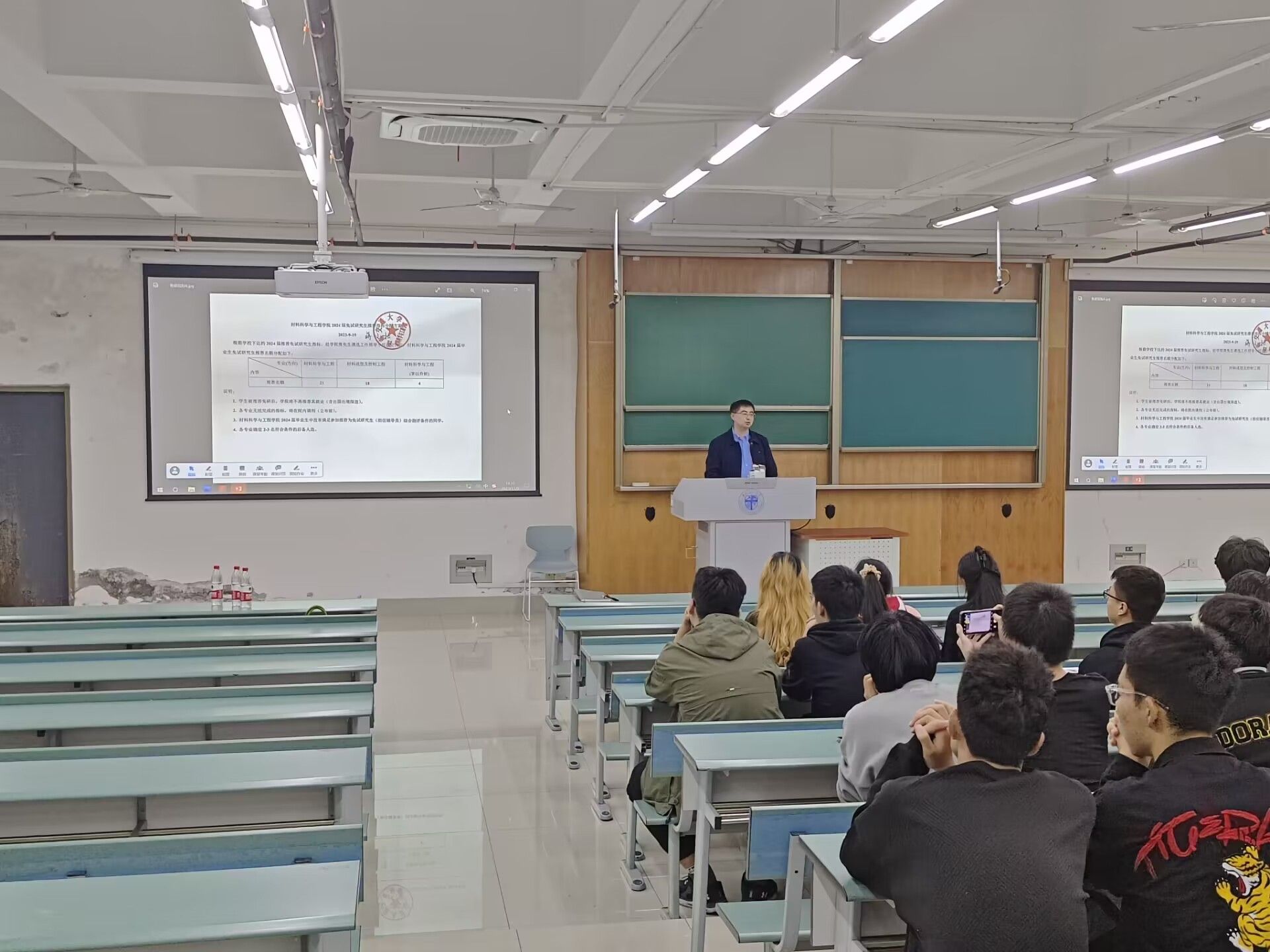 首先,蒋小松根据学校本科免试研究生的相关政策向同学们进行了全方面的讲解,并介绍了往届同学的个人发展情况。结合相关案例,用实际数据详实地为同学们做学业导航,帮助同学们规划好大学生活。