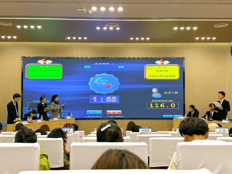 本次决赛的辩题是“青春应该多样尝试还是目标聚焦”,正方为生医代表队,认为“青春应该多样尝试”,反方为材料6班代表队,持相反观点。比赛开始,正反方对各自的观点立论陈词;随后进入攻辩环节和自由辩论环节,双方辩手紧扣对方论点中的漏洞,进行了一次又一次的思想碰撞,并将本次决赛推向白热化阶段,台下掌声不断。最后正反双方四辩总结陈词,为本场辩论收尾。
