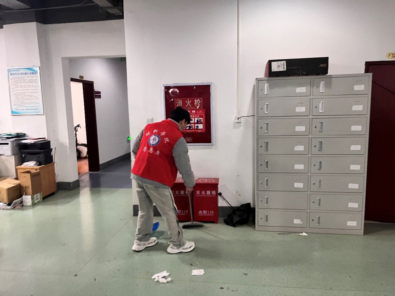 研究生志愿者深入学院进行学雷锋日志愿服务活动,前往学院所在教学楼对自行车棚停放杂乱的共享单车进行了治理,随后对三号教学楼二楼学生工位公共区域进行了打扫,给同学们营造一个干净的学习环境。