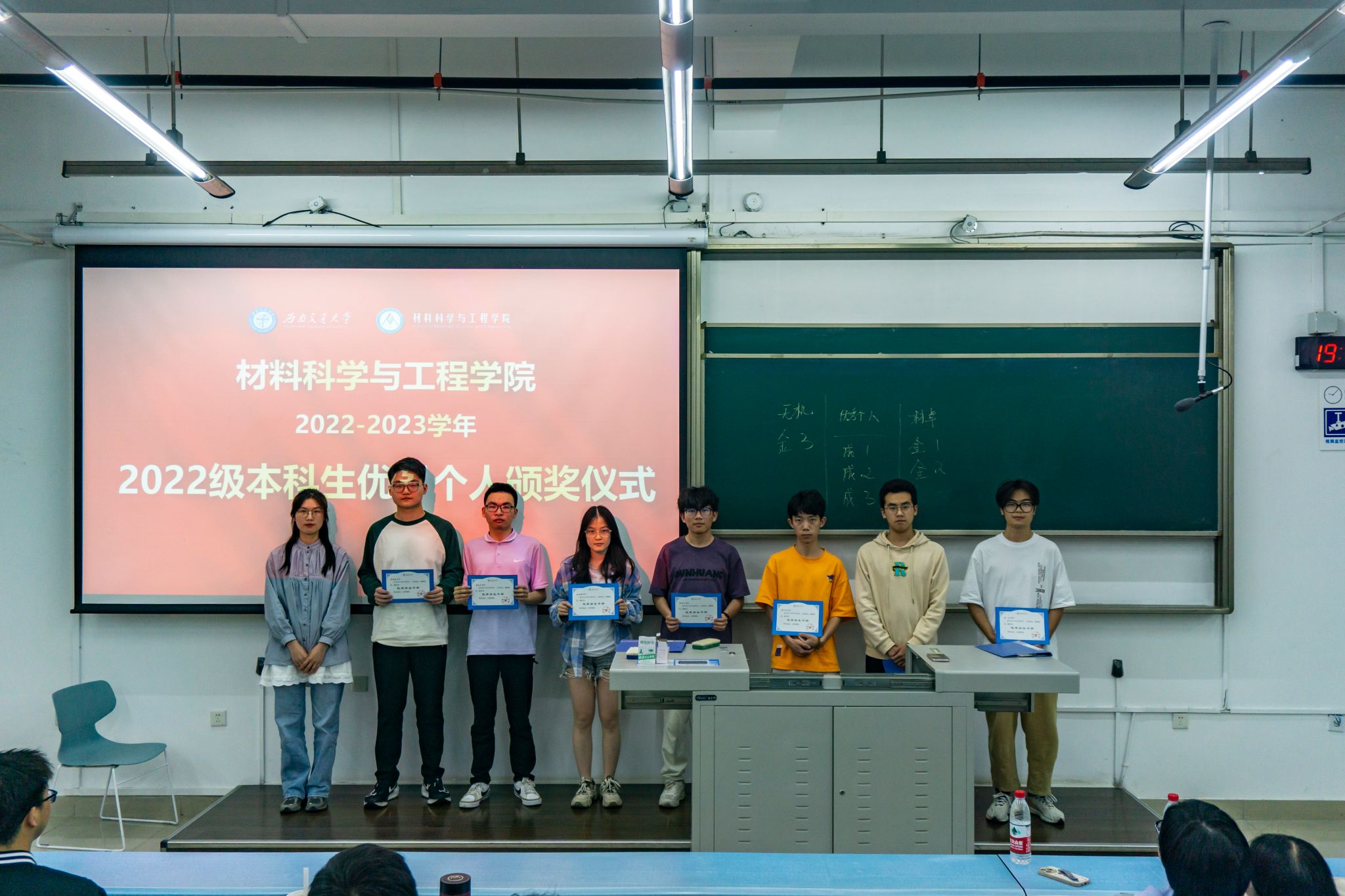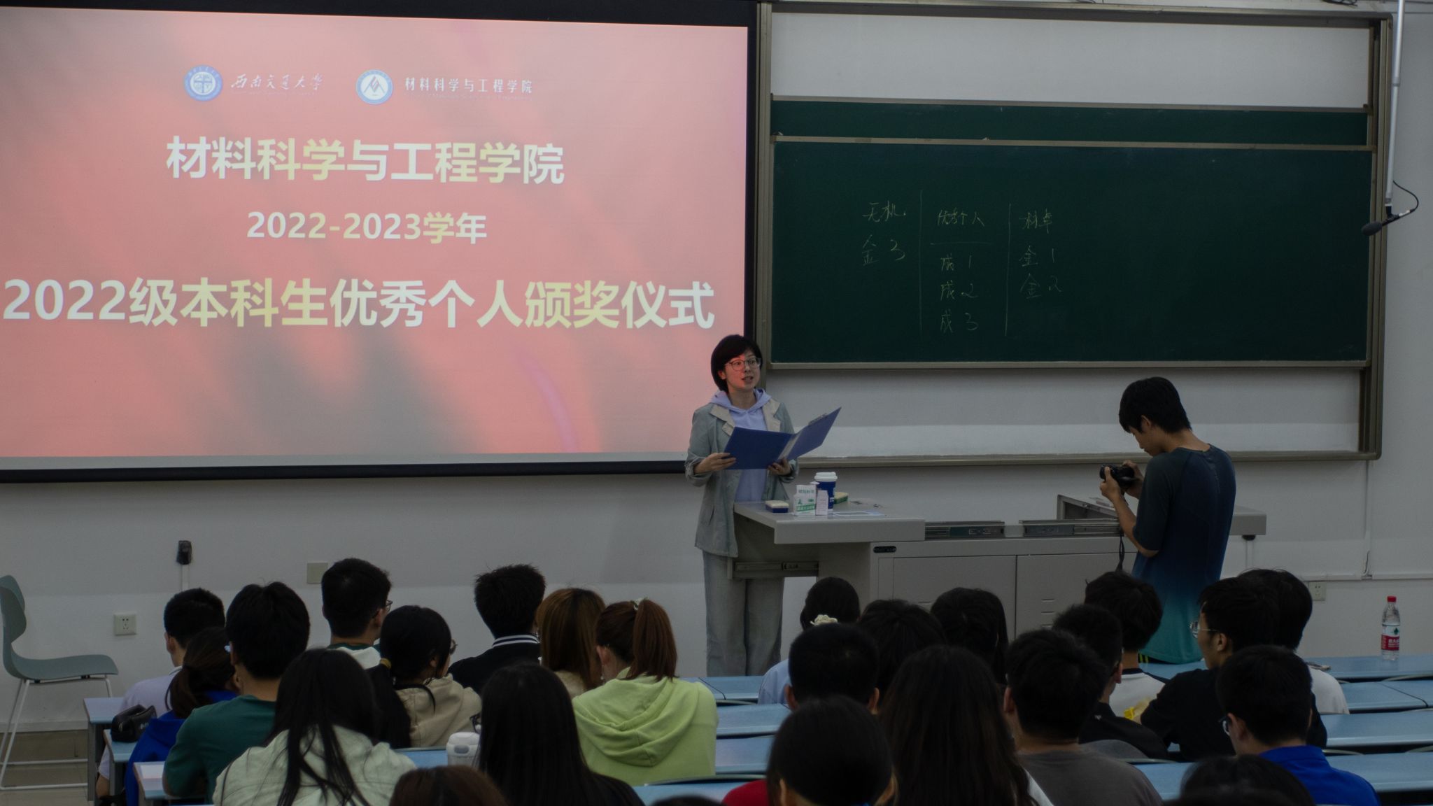 为加强班风学风建设,营造良好氛围,表彰先进,形成良好的示范引领作用。会议第一个环节为2022-2023学年优秀学生及集体颁奖仪式。熊钰老师为获得“三好学生”称号的同学颁发奖状,钟国玲老师为获得“优秀学生干部”的同学颁发奖状,王誉静老师为获得“明诚奖”的同学颁发奖状。张琬祺老师表示,希望受到表彰的同学在学院、年级、班级充分发挥作用,鼓励同学们再接再厉,在新学期取得更好的成绩。