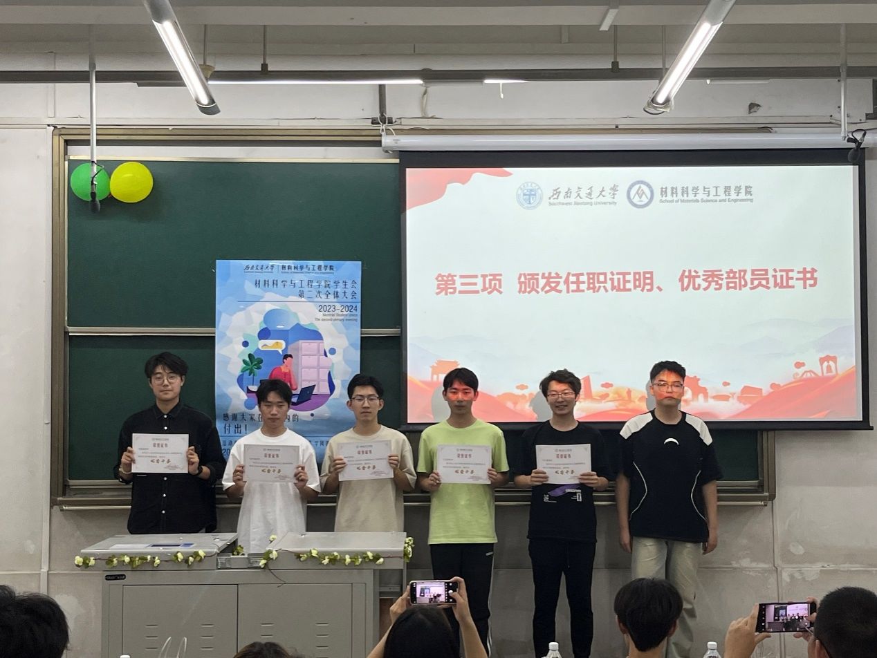 大会第三项议程:颁发任职证明、优秀部员证书。一纸证书,代表着不懈努力工作受到的肯定,意味着辛勤付出得到的回报,或是其他——会场洋溢着欢乐的笑声。
