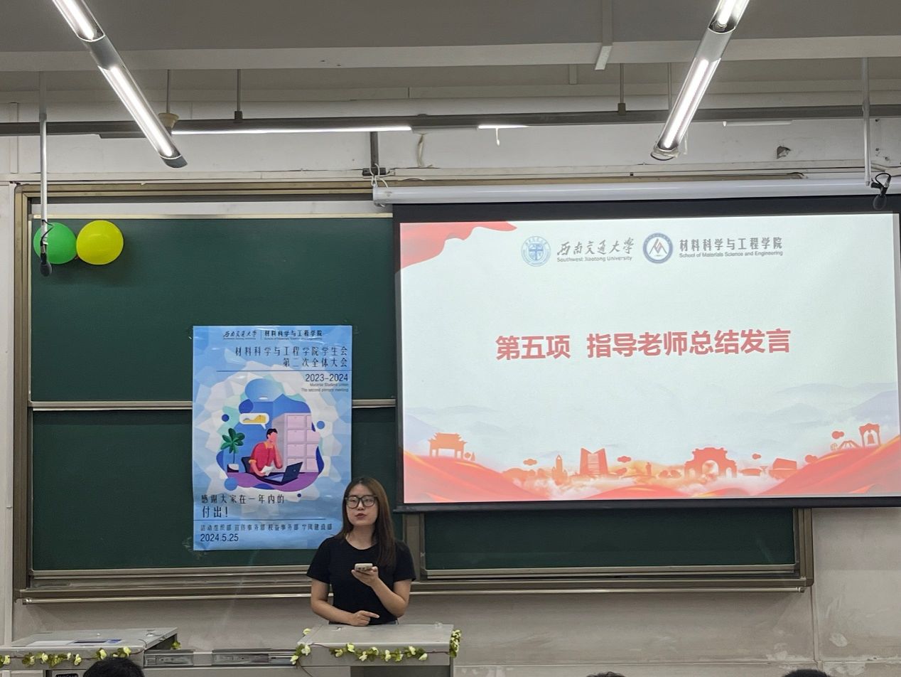 大会第五项议程:指导老师熊心怡总结发言。熊老师充分肯定了学生会全体成员在过去一年中的辛勤付出,她强调,学生会必须始终以学生为中心,倾听同学们的心声,关心他们的需求,为他们提供及时且高效的帮助与支持。同时,她也鼓励学生会成员要不断提升自身素质,发挥表率作用,引领全体同学共同成长与进步。最后也期待更多同学可以留任学生会。