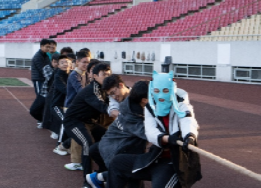 紧接着,备受期待的拔河比赛正式开始。同学们个个摩拳擦掌,蓄势待发。在拔河过程中,每一位同学都竭尽全力,每一个班级都团结一致,为了班级的荣誉而战。一些同学甚至戴上了搞怪的头套,以幽默的方式瓦解对方的士气。操场上的喊叫声此起彼伏,同学们都在为自己的班级加油助威。经过一番激烈的比拼,材料三班凭借出色的团队协作和力量,勇夺桂冠,材料茅班和材料四班分别夺得亚军和季军。赛后,同学们领取了自己拼搏得来的小奖品,并与辅导员和班助合影留念,留下了难忘的瞬间。拔河比赛后,还有许多小游戏,如“手舞足蹈”、投壶等,这些游戏不仅考验了同学们的反应能力和协调性,也让现场充满了欢声笑语。