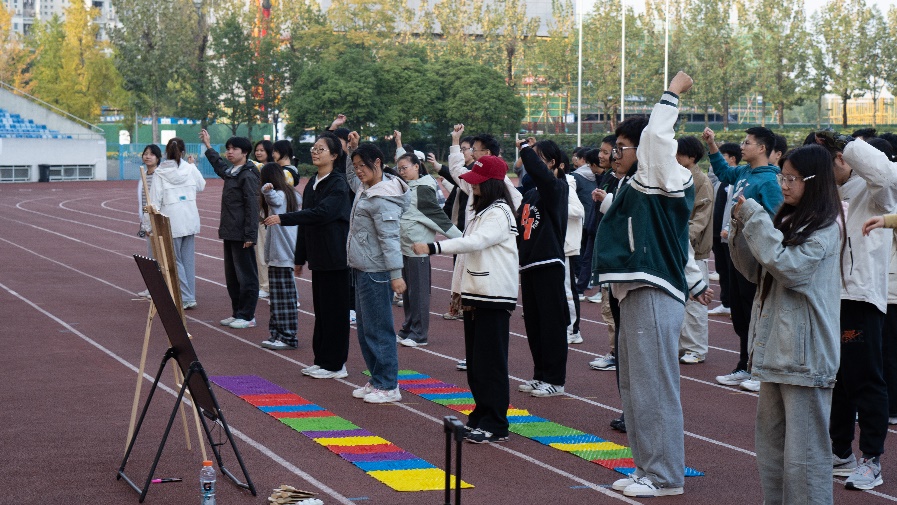 随后,学生代表带领新生进行了一系列的热身活动,同学们积极配合,认真地完成了准备活动,确保在接下来的竞技中能够安全、有效地发挥。热身活动不仅提高了同学们的体温,也点燃了他们参与比赛的热情。
