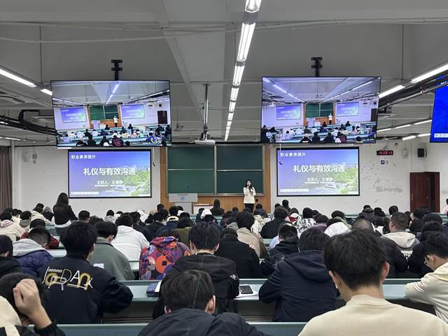 第一部分,为提升大学生的礼仪文化和综合素质,进一步营造和谐的校园氛围,会议第一个环节由王誉静老师开展以“礼仪与有效沟通”为主题的基础礼仪培训。王老师从礼仪概述、仪表礼仪、仪态礼仪、社交礼仪、有效沟通五个方面深入展开,重点围绕形象管理,教授如何通过服装、仪容仪表展现出专业和自信的形象,从形象礼仪基础传达美学内涵,提升审美素养,让学生具有感受美、鉴赏美和理解美的能力,并予以自身应用,展现自信和风采。其次教授同学们掌握得体的言辞和举止,包括肢体语言、交流眼神以及站姿坐姿等礼仪举止,展现昂扬向上的精神风貌,提升自身人格魅力。课堂从多个方面鼓励同学们以美识礼,有意识的管理和约束个人言行,不断提升个人修养,倡导大家营造学习礼仪知识、践行礼仪规范,感受礼仪之美的氛围。掌握基本的社交礼仪,不仅是当代青年学子良好风貌的展现,更是个人发展和社会文明进步的要求。