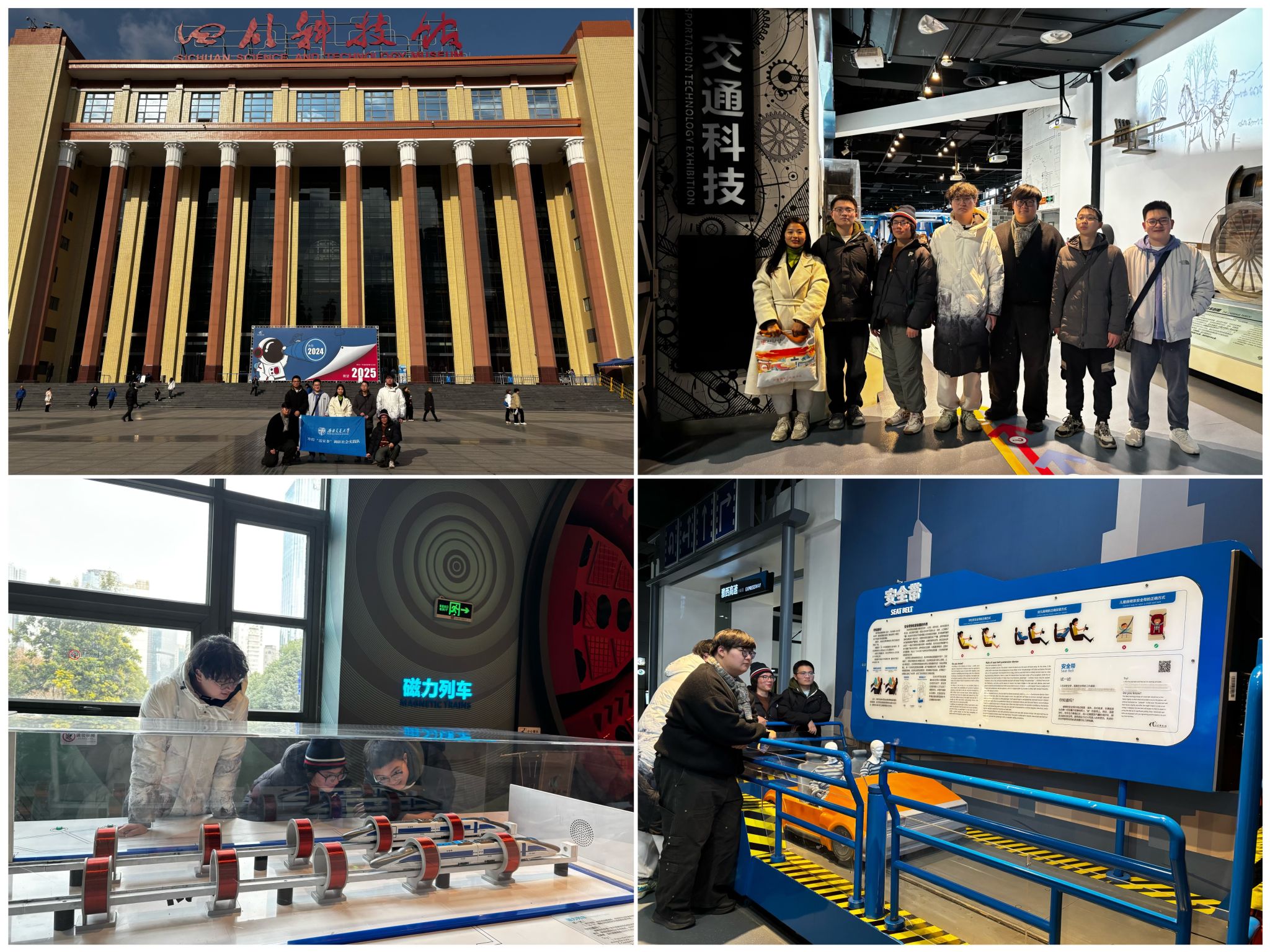 下午实践队一行来到了四川科技馆参观学习。实践队在科技馆内的航天、交通、水利等主题领域展览部分通过学习和体验的方式了解科学问题的原理,进一步丰富了大家的知识储备,拓宽了眼界。在高速列车展览模块,作为交大学子的队员们更是驻足良久,体验着作为交大人的自豪感。