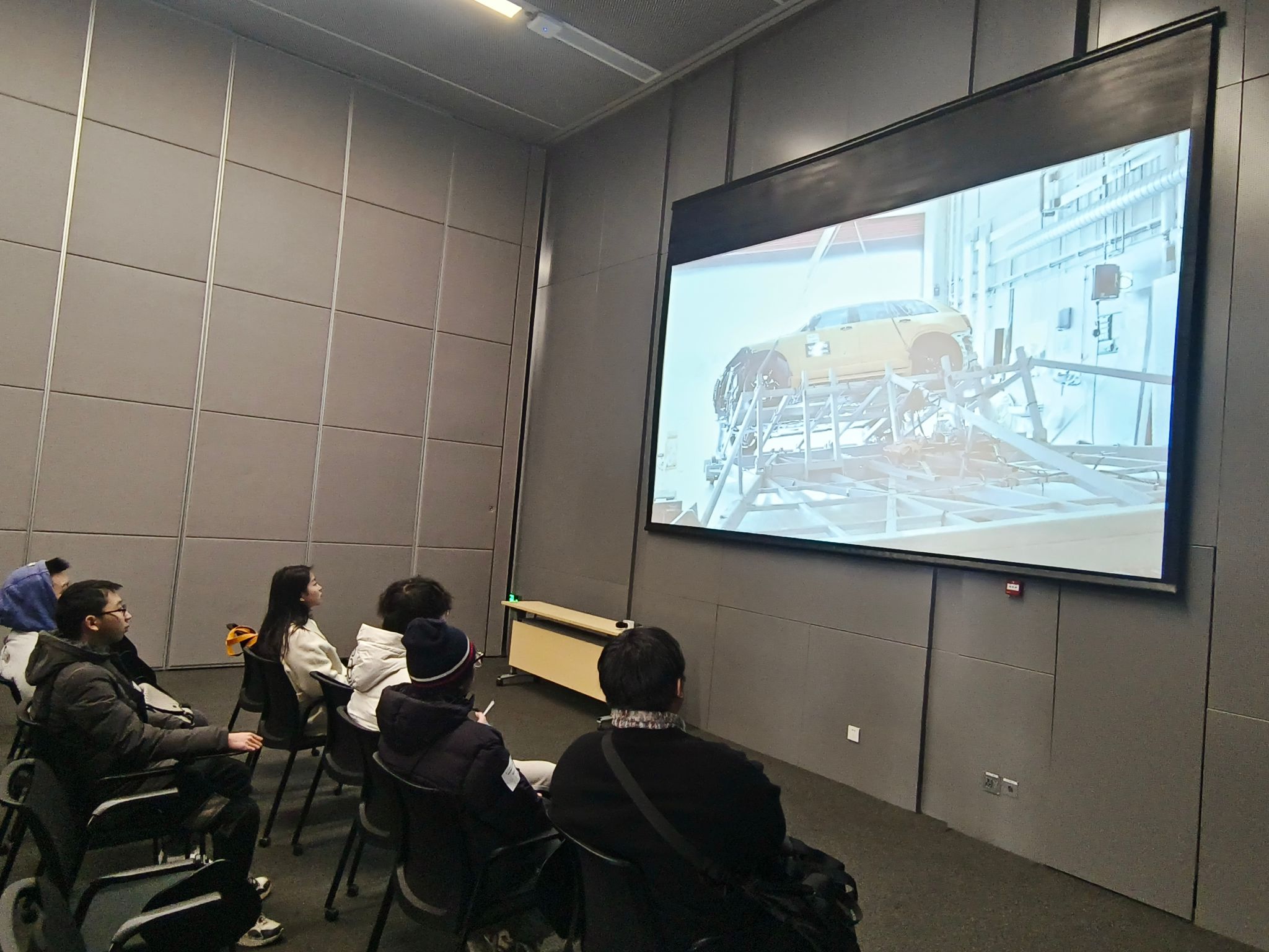 1月8日上午,实践队先前往沃尔沃汽车品牌体验中心(中国)进行参观。实践队首先对沃尔沃的品牌文化进行了充分地了解,该部分主要以视频讲解和交流互动的形式开展。体验中心赵老师从品牌历史、车标含义、安全性检验、人文关怀等方面对沃尔沃汽车进行了详细介绍,提及沃尔沃汽车使用硼钢来增强车体安全性时,金属材料专业的实践队员积极交流,他们用专业课上学到的知识去解释硼钢的高强度原因,现场掀起互动热潮。