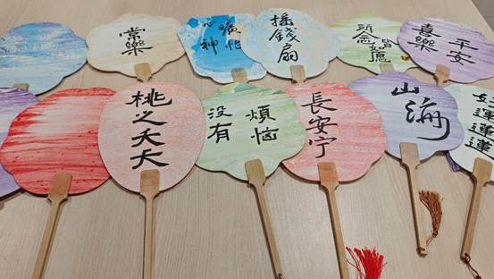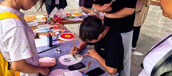 在漆扇创作区,同学们用自己喜欢的色彩搭配不同形状的扇面,晕染出属于自己的独一无二的作品,让每一把漆扇成为承载自己情感的艺术品,以此传递积极心态,抒发内心丰富多彩的情感。