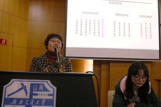 随后由卢晓英老师进行本次安全文化月结果展示。卢晓英老师从实验室安全、寝室安全以及日常生活等三个方面向在场的师生们展示了本届安全文化月的结果。