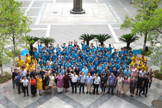 开幕式结束后,全体来宾,老师以及同学们在第二教学楼下拍摄了一张别具一格的合影照。