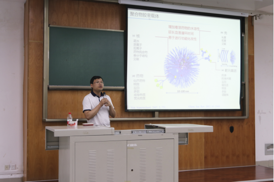 大会第一项,由周绍兵教授进行主题为"高分子材料在生物医学中的应用研究"的主题讲座。周绍兵教授向在座老师及学生介绍了自己的研究团队,详细讲解了高分子纳米载体用于肿瘤的治疗方法、可降解形状记忆高分子的研究等多项团队研究方向,并诚挚邀请感兴趣的同学可与他进行私下的沟通与交流。讲座结束后,同学们纷纷针对周教授团队的招生情况、肿瘤治疗的研究前景等方面踊跃提问,周教授也热情回答了同学们的问题。
