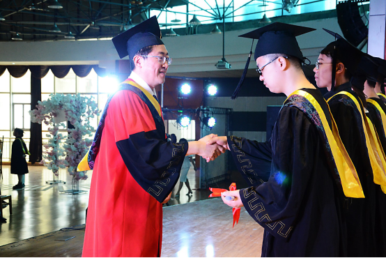 章春军副书记宣读优秀毕业生名单,朱旻昊院长为省级毕业生颁发纪念证书。李涛副院长和冷永祥副院长为校级优秀毕业生代表颁发纪念证书。
