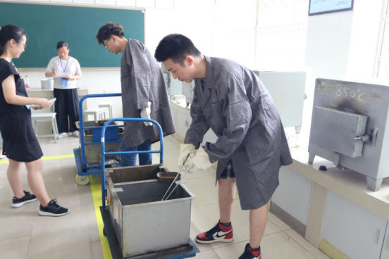 国家级实验室X5412进行。参加比赛的每组选手随机抽取样品,并根据抽取的样品及要求制定热处理工艺,评委对工艺制定、热处理操作过程、硬度操作过程评分。最后一组操作完毕后,此次竞赛正式结束。