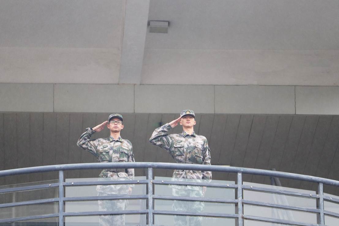 彭康:我想感谢那些带我们训练的学长,他们能在百忙之中来指导我们训练,很幸苦,能够和我们国旗班共进退。学长们作为待在国旗班的最后一届国防生,我们也不想辜负学长们对我们的期待,要把国旗班发展得更好。