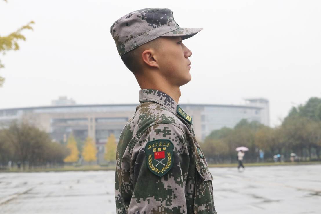 当谈到国旗班的训练时,两位学长说道,包括站军姿、单个军人队列动作、持枪、擎旗以及体能训练等等。最让两人难忘的是体能训练,兄弟们一起冲圈、俯卧撑、仰卧起坐等等,虽然很累,很痛,但“痛”说明你在成长。这锻炼了国旗班的团体意识,磨练毅力、耐力的同时增强了凝聚力。所有人都凝聚起来了,一个真正的国旗班才能诞生。作为国护人,守护国旗是荣誉,更是责任——把时时刻刻守卫国旗的精神风貌传承下去,让更多的人了解国旗文化。“以我火红青春谱写国旗礼赞,以我热忱生命捍卫国旗尊严”,这早已不再只是一句口号,而是对国旗班热血男儿的真实写照。
