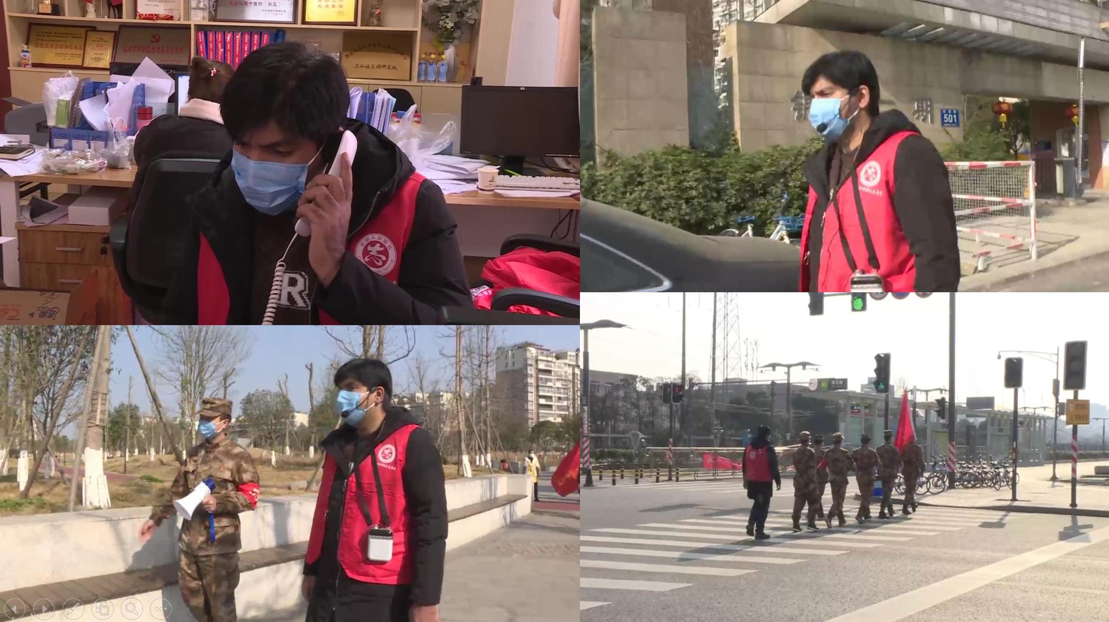 完成摸排工作后,苏梅尔又主动来到社区党群服务中心,跟随犀和社区退役军人疫情防控临时党支部队伍,承担党支部每日巡查重任,对外出、不戴口罩居民进行劝导。如果说一开始苏梅尔还略显拘束,在进行几次劝导工作后,他就迅速融入了角色,逐渐对巡查流程熟练起来。一天的巡查工作下来,苏梅尔说:“做志愿服务让我觉得很有意义,并且中国和巴基斯坦一直是好朋友,在朋友需要帮助的时候,献上一份力,希望我们大家一起努力,战胜疫情。同时,自己也会发动更多在犀浦居住的外籍人士加入进来,一起抗‘疫’”。