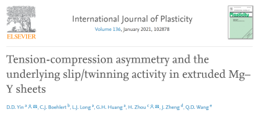 镁合金作为最轻的金属结构材料,具有低对称的HCP晶体结构,从而表现出与立方金属不同的拉压不对称性,不利于后继的塑性成型,也极大地影响构件设计和实际服役。深入理解进而调控拉压不对称性是突破镁合金应用瓶颈的关键,而对微观变形模式激活规律的厘清更是关键的关键。学界普遍认为孪生的极性和强织构导致了镁合金的拉压不对称性,这一观点也得到了无数实验和理论上的支持,但是依然存在一些疑问,比如,一些无织构的铸造镁合金也存在显著的拉压不对称性;某些镁合金在特定变形条件下表现出异常的反拉压不对称性(压缩屈服强度>拉伸屈服强度);添加稀土元素可显著降低拉压不对称性,但对其变形机制的激活却存在争议。