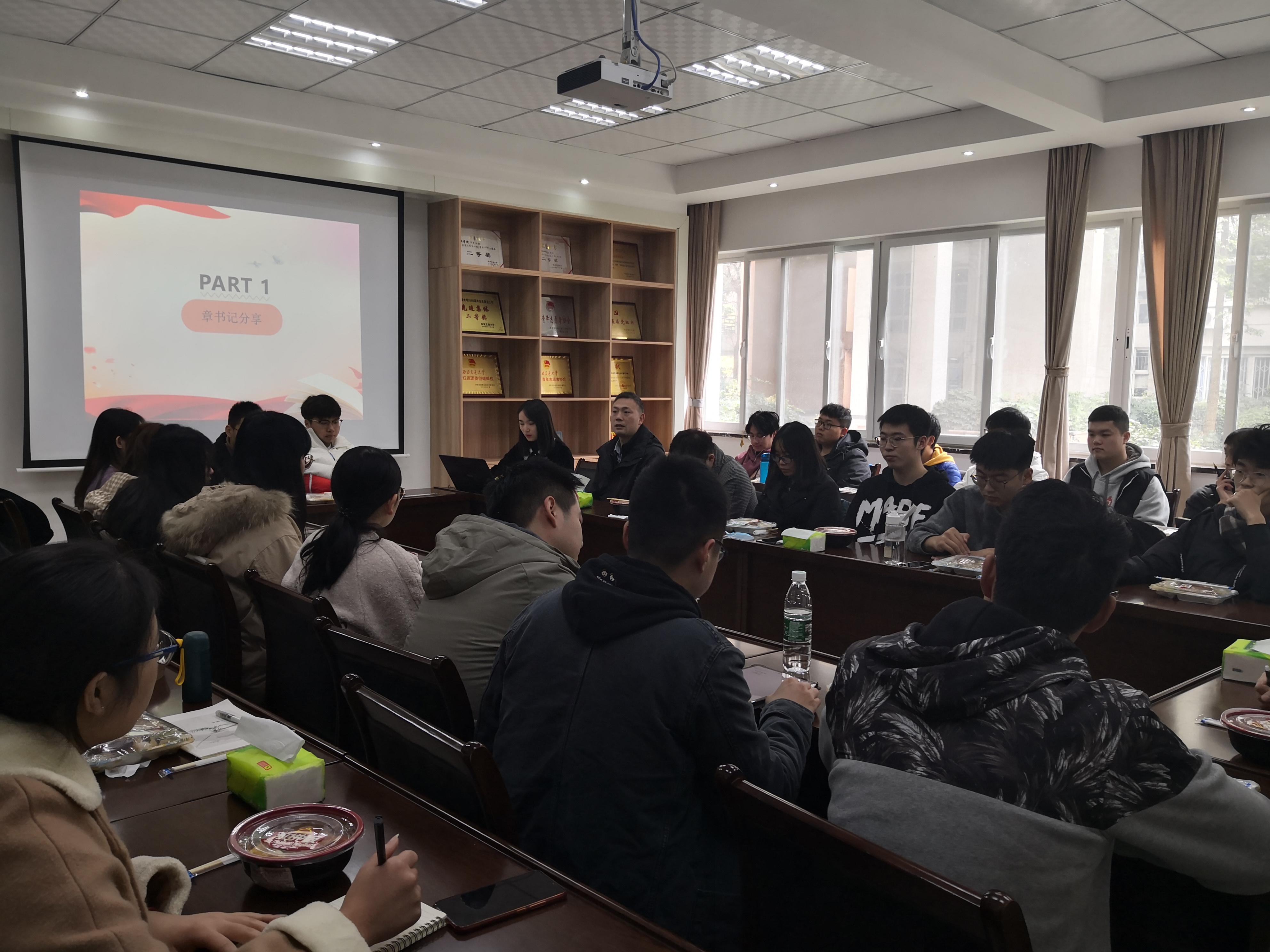 党委副书记、纪委书记、学生工作组组长章春军,2018级辅导员梁喻嘉、罗丹,以及2018级各班班长,团支书。首先,梁喻嘉老师向同学们介绍了本次活动的主题:做好班团建设,加强学风建设。