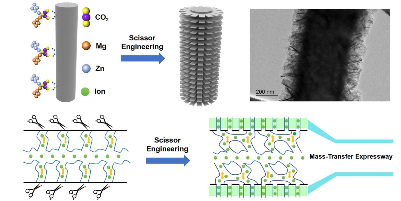 碳纳米材料对于现代科技技术的发展至关重要。纳米金刚石、富勒烯、碳纳米管、石墨烯和碳量子点因其独特的电学、力学、光学、热学和化学性质受到越来越多的关注,这些独特的性质为能源、传感以及环境修复等领域的发展铺平了道路。目前,分子水平的可控构建被认为是影响碳纳米材料结构的关键因素之一。众所周知,表面工程是一种提高碳纳米材料性能并拓展其应用领域不可或缺的基础手段。遗憾的是,目前还没有一种简便和通用的方法来定制具有理想特性的不同尺寸的碳纳米材料。本文提出的分子剪刀剪切策略不仅在分子水平上成功实现不同维度碳纳米材料的可控化构建,而且为碳材料的革新作出巨大的贡献。