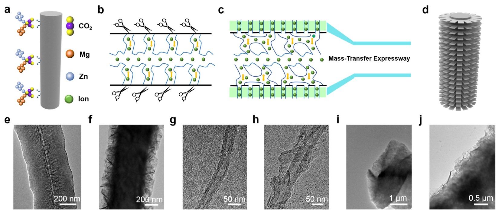 2018级硕士生王庆通过分子剪刀剪切策略实现不同维度碳纳米材料的可控化构建,并对它的裁剪机理进行了详细的阐述。不同于目前广泛研究的表面修饰技术,他们采用分子剪刀打开碳材料的表面,实现分子尺度上的裁剪。在一定的温度条件下,锌蒸气和镁蒸气会进入碳材料的内部,一旦遇到二氧化碳就会形成一把分子剪刀,进而实现碳纳米材料的可控裁剪。测试表明,分子剪刀作用下的碳纳米材料不仅拥有高的比表面积,而且拥有适宜的孔径分布。在PVA/Na2SO4凝胶电解质体系中,器件展现出4.63 mWh cm–3的能量密度(对应功率密度为3520 mW cm–3)。研究者相信,此项研究提出的分子剪刀剪切策略一方面将会为碳纳米材料的革新提供借鉴意义,另一方面将会促进能量存储、传感和环境修复等领域的发展。该研究成果以“Tailoring Carbon Nanomaterials via a Molecular Scissor” 为题发表在Nano Today上。(DOI: 10.1016/j.nantod. 2020. 101033)