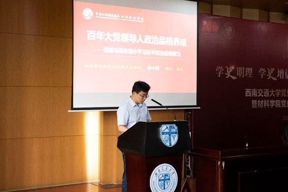 党委书记陈勇、副书记章春军、师生党员以及来自力学、土木、机械学院的学生代表等共计230余人参加学习。中共四川省委党校教授、马克思主义学院副院长、四川省第十三批学术和技术带头人后备人才廖小明博士应邀作“百年大党领导人政治品格的养成”专题报告。本次报告会由党委宣传部和大发在线体育投注平台