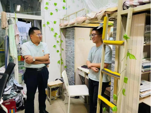 (2021年5月以来,副楼长黄德明、许欢多次走访学生宿舍,加强与毕业生之间的沟通交流,舒缓毕业压力。)