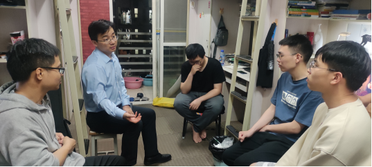 (2021年5月27日,楼长蒋小松召集2018级学生围绕学业、考研、就业等话题与X2128召开座谈会。)