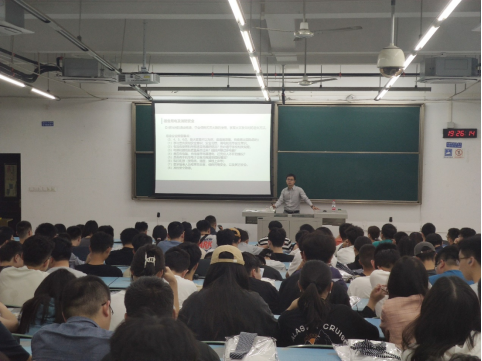 (2021年4月29日,楼长章春军、副楼长黄德明为2018级学生召开考研指导讲座。)