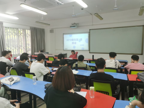 (2021年5月21日,2018级生医1班班主任卢晓英召开班会,与班级同学交流就业、考研情况,指导考研和就业规划。)