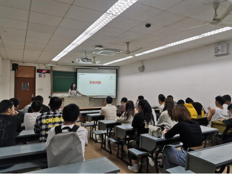 (2021年5月11日,研究生2020级召开年级大会开展安全教育,强调宿舍及工位安全。)