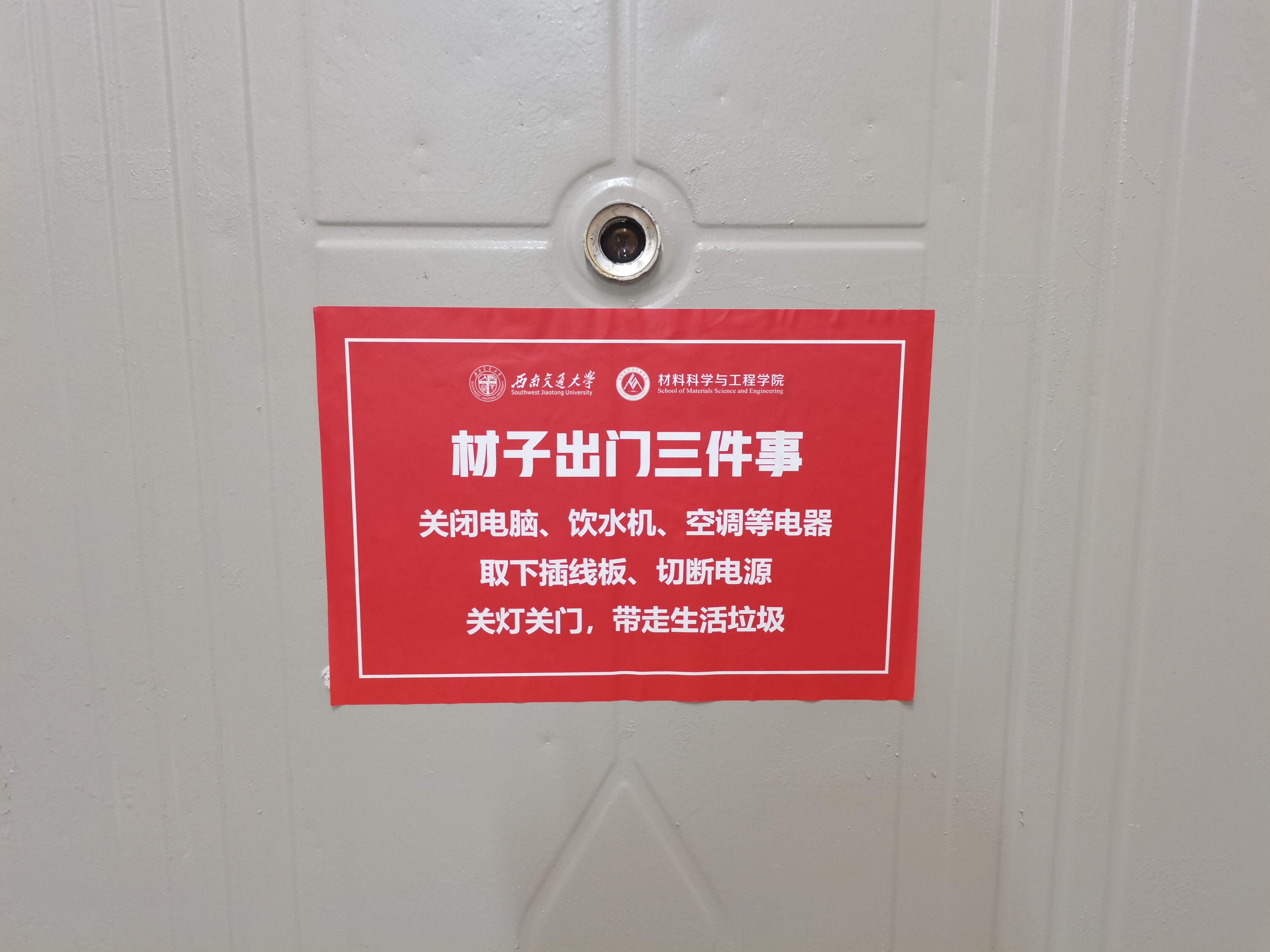 (学生宿舍张贴“材子出门三件事”安全提示)