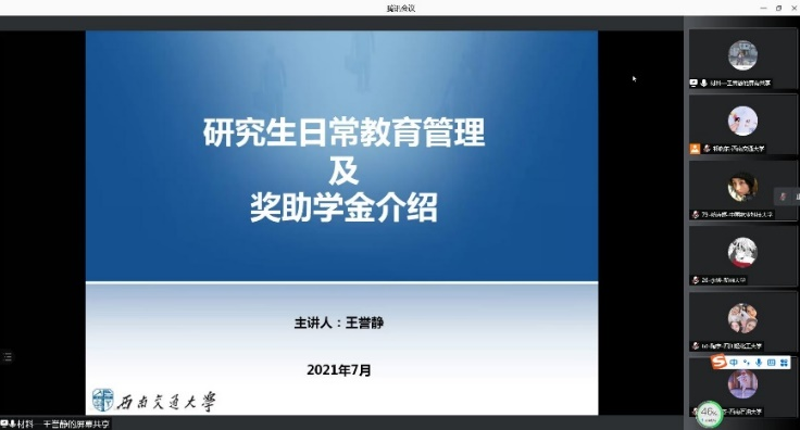 7月8日上午,王勇教授为同学们介绍了研究生培养方案和新生奖学金相关政策,辅导员王誉静老师为同学们介绍了研究生日常教育管理和奖助学金政策,加深了同学们对大发体育