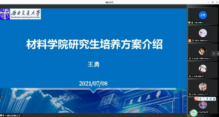 2021年全国优秀大学生暑期线上夏令营活动顺利举行。来自西南交通大学、南昌大学、北京林业大学、西南石油大学等全国30余所高校的83名优秀大学生参加了此次活动。