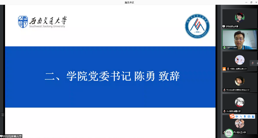 三个关于“3”的历史故事,分别是“一个班出了3名院士”、“学院有3位‘两弹一星’功勋奖章获得者”、“全国院系大调整时期学院支持了3所学校的建设发展”,说明了学院严谨治学的人才培养传统,强调了学院师生的爱党爱国情怀,阐述了学院师生的担当格局。陈勇书记表示希望各位营员可以加深对西南交通大学大发在线体育投注平台